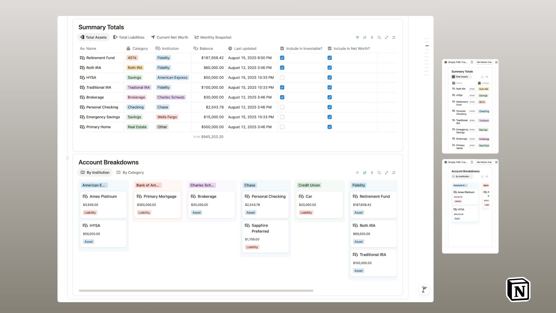 Simple FIRE Tracker for Notion