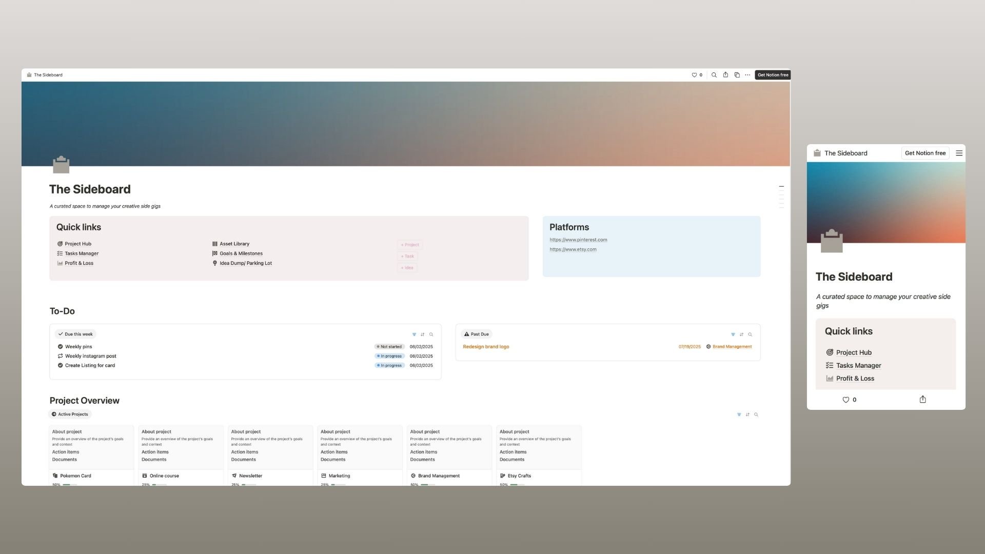 The Sideboard: Side Hustle Dashboard | Notion Template